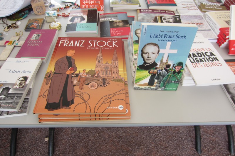 Im vergangenen Herbst besuchten Pfr. Gisbert Wisse und die beiden Vorstandsmitglieder des Franz-Stock-Komitees, Thomas Bertram und Karl-Heinz Sendt, in einem privaten Kontext den Pfarrer von Saint-Mère-Église, Marie Bernard Seigneur. Dieser lud sie ein, als deutsche Vertreter zusammen mit denen der Amis de Franz Stock aus Frankreich auf das Wirken von Franz Stock als einem der Versöhner zwischen den Völkern beim Friedensfestival präsent zu sein und über ihn zu informieren. Aus organisatorischen Gründen konnte die französische Wanderausstellung nicht gezeigt werden, aber Thomas Bertram brachte seinen Vortrag „Franz Stock – L’Aumonier de l’enfer, Versöhner und Brückenbauer“ mit. Dabei bot ihm Pfr. Gisbert Wisse freundlicher Weise durch die seine französischen Sprachkenntnisse Unterstützung an.