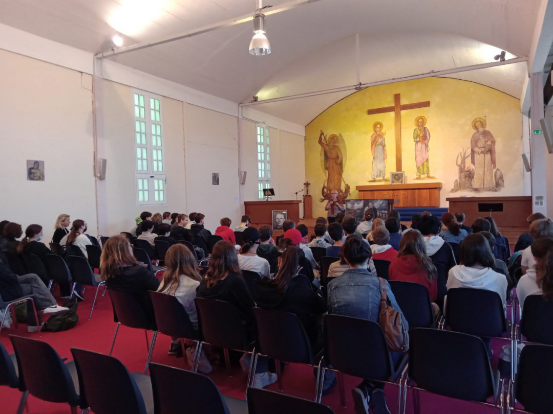 Le 13 mai 63 élèves de 4ème du collège Saint Charles de Rueil Malmaison, accompagnés de leurs professeurs et du Père Fidèle ont suivi avec intérêt une présentation du Séminaire des Barbelés et de la figure de l'Abbé Franz Stock.