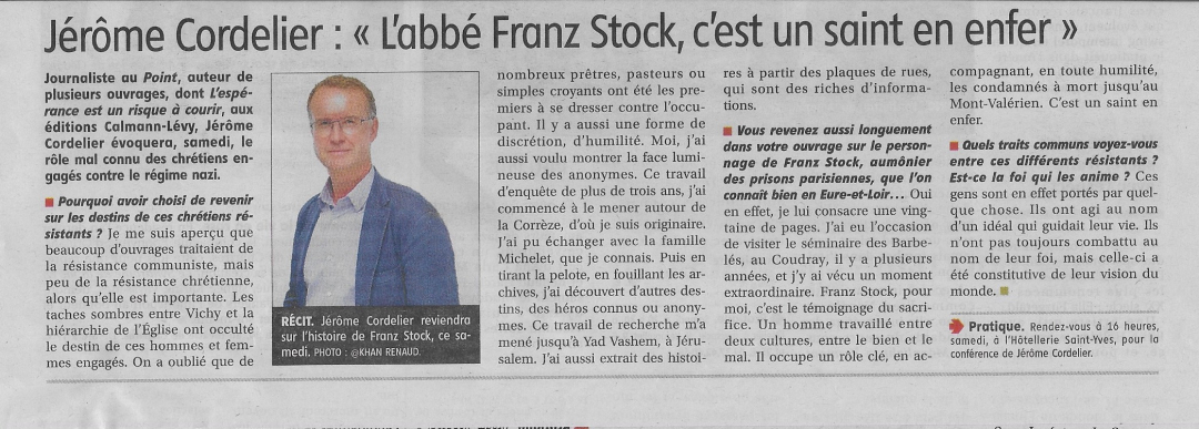 Le 22 septembre 2021, 200 élèves du collège Saint Justin de Levallois-Perret, accompagnés de leurs professeurs, ont suivi avec attention une présentation du Séminaire des Barbelés et de Franz Stock. Un certain nombre d'entre eux ont lu quelques passages du Journal de Guerre de Franz Stock ainsi que des lettres de fusillés.