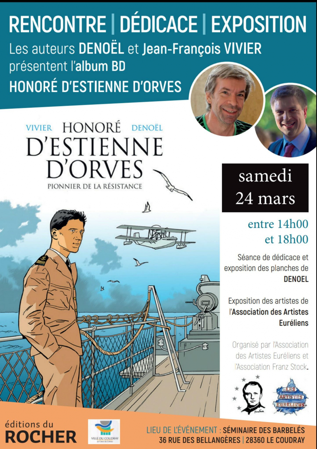 Le samedi 24 mars 2018 au Séminaire des Barbelés, Centre Européens de Rencontres Franz Stock, un public enthousiaste et impatient est venu à la rencontre du scénariste Jean-François Vivier et du dessinateur Denoël qui ont dédicacé leur nouvelle BD, « Honoré d’Estienne d’Orves », pionnier de la résistance à la destinée lumineuse qui a croisé celle, non moins lumineuse de Franz Stock.
