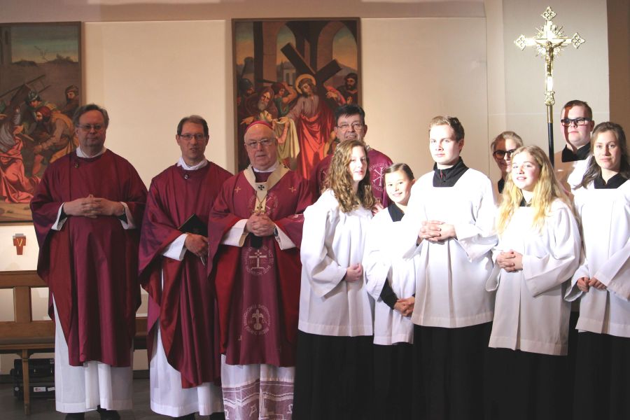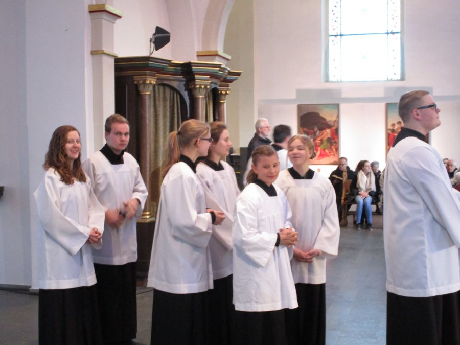 La partie musicale était assurée par un chœur composé de la chorale « Belcanto » de Höingen et du « nouveau chœur » de Neheim, dirigé par Helmut Pieper de Höingen, et par un ensemble de 8 instruments à cordes et de l’orgue de chœur, tenu par Benjamin Mausolf, étudiant en musique religieuse au conservatoire de Cologne qui était aussi chargé des chants. La direction de l’ensemble avait été confiée au maître de chapelle de l’église Saint Jean-Baptiste Hartwig Diehl, responsable de l’accompagnement de toute la célébration au grand orgue et de la conception sonore.