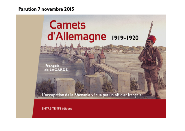 Paru le 7 Novembre 2015 aux éditions ENTRE-TEMPS, cet ouvrage de François de Lagarde relate l’occupation de la Rhénanie vue par un officier français.
