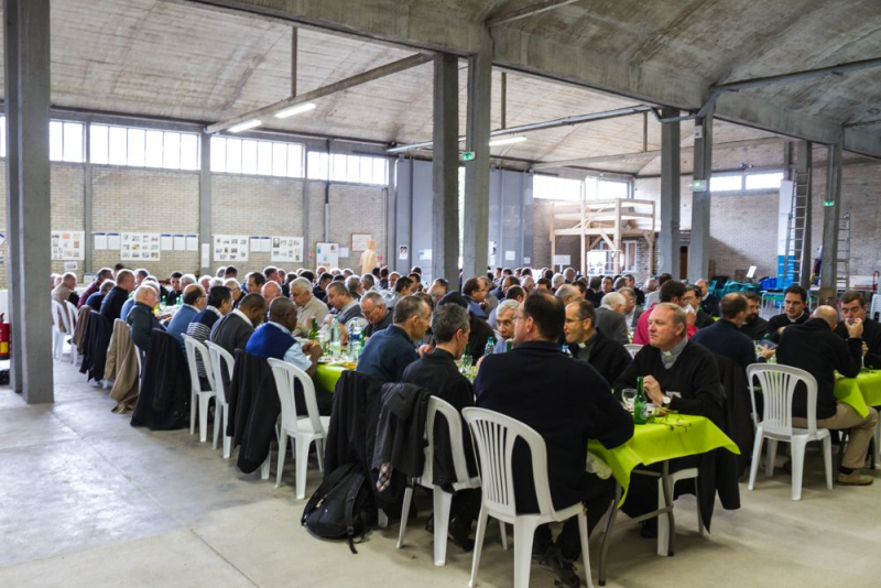 En cette année de la Miséricorde, le presbyterium du diocèse de Nanterre s'est tenu à Chartres le 6 Octobre, en mémoire de Franz Stock apôtre de la miséricorde et messager de paix. Emmenés par Mgr Aupetit, Evêque de Nanterre,ce groupe de 110 personnes a visité le séminaire des barbelés et y a déjeuné.