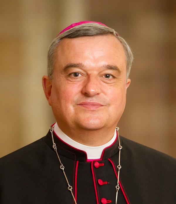Bischof Dr. Karl-Heinz Wiesemann von Speyer war der erste Besucher der Wanderausstellung "Frieden als Auftrag" in der Heimkehrer-Dankeskirche Heilige Familie in Bochum. Begrüßt wurde der Bischof am Kirchenportal von Pfarrer Norbert Humberg sowie einigen weiteren Vertretern der Gemeinde St. Franziskus Bochum. Pfarrer i.b.D. Theo Schwens führte den Speyerer Bischof anschließend durch die Kirche und die Heimkehrer-Gedenkstätte in der Krypta sowie natürlich die Ausstellung. Beeindruckt zeigte sich der Bischof vor allem auch von der besonderen Intention der Heimkehrer-Dankeskirche. Nach dem Besuch der Heimkehrer-Dankeskirche reiste der Bischof weiter zum Zisterzienserkloster Bochum-Stiepel. Dort referierte der Bischof im Rahmen der Vortragsreihe "Auditorium Kloster Stiepel" in eindrucksvoller Art und Weise über das Leben und Wirken von Abbé Franz Stock.