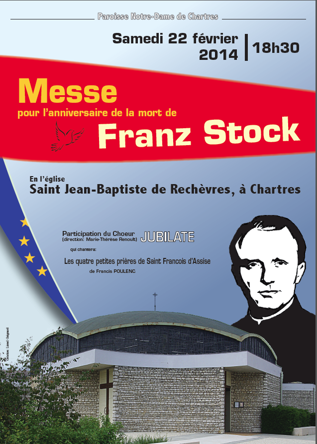 wir laden zur Teilnahme am Franz-Stock-Gedenktag 2014 herzlich ein. Diesen wollen wir am Sonntag, den 23. Februar, mit einem feierlichen Gottesdienst um 11.00 Uhr in der Neheimer Pfarrkirche St. Johannes Baptist zur Erinnerung an Franz Stocks Todestag (24.02.1948) beginnen. Die Mitglieder, Freunde und Förderer unseres Komitees sind anschließend zu einem Mittagessen eingeladen, das im Pfarrheim St. Johannes zu einem Kostenbeitrag von 10 € angeboten wird. Aus organisatorischen Gründen benötigen wir hierzu eine Anmeldung spätestens am 17. Februar. Um 14.30 beginnt an gleicher Stelle unsere jährliche Mitgliederversammlung. Aus Anlass des Todestages von Franz Stock wird auch in Chartres und Paris zu Gedenkgottesdiensten eingeladen. Weitere Informationen auf unserer Homepage: http://www.franz-stock.org/index.php?option=com_content&view=article&id=689:franz-stock-gedenktag-mitgliederversammlung-2014&catid=39&Itemid=133&lang=de