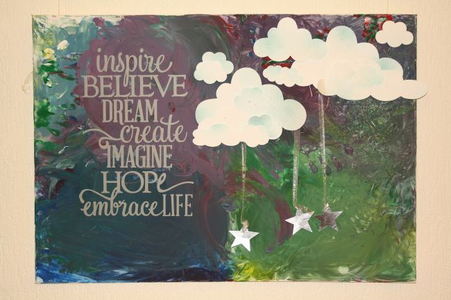 • Bildwerke, die zusammen mit dem heilpädagogischen Kindergarten gemalt wurden