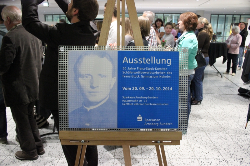 Plakat AusstellungZum 50-jährigen Bestehen des Franz-Stock-Komitees für Deutschland haben das Komitee und die Sparkasse Arnsberg-Sundern für die Schülerinnen und Schüler des Franz-Stock-Gymnasiums Arnsberg einen Preis ausgelobt. Ziel des Wettbewerbes war es, dass sich die Schüler und Schülerinnen mit dem Namensgeber ihrer Schule künstlerisch auseinander setzen und ihnen die geschichtliche Person Franz Stock, mit seinen Vorstellungen und in seinem Handeln näher zu bringen. An diesem Wettbewerb haben sich erfreulich viele Schüler und Schülerinnen in unterschiedlicher Art und Weise beteiligt.