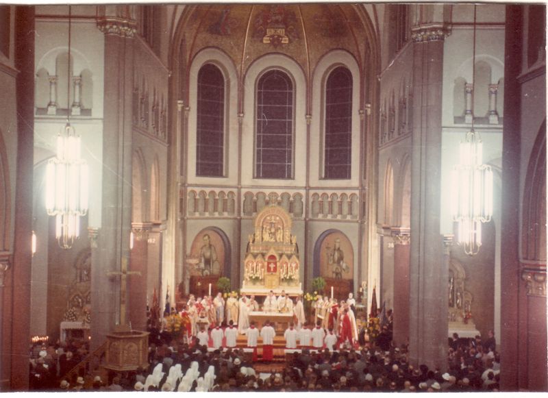 Dann feierte Bischof Michon in der überfüllten Kirche mit 22 französischen und deutschen Priestern die hl. Messe für den Frieden. ln der von Père Chabanet und Dompfarrer Schwingenheuer in französischer und deutscher Sprache gehaltenen Predigt klang noch einmal ein Wort der Mahnung auf: „Laßt uns diese Lehre annehmen. ln einer Welt, in der noch nicht aller Haß erstorben ist, laßt uns Boten der Liebe und des