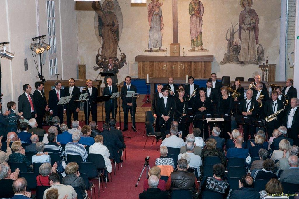 A 20h30 commençait le Concert Mémoire, chants entrecoupés de commentaires sur Franz Stock, resitué dans le cours des évènements entre la Libération de 1944 et la mort de F. Stock en février 1949, qui repose désormais depuis 1963 à Chartres en l’église saint Jean baptiste de Rechèvres.