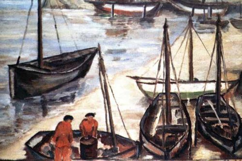 Melancholische Themen verfallener Kais und einsamer Segel auf dem Wasser, Genrestücke bretonischer Trachten gelangen Stock am besten. Alle Zeichnungen bestimmt eine zarte Sensibilität. Mit Wärme spricht Stock in seinem Bretagnebuch von den "Nabis", den Vertretern jener künstlerischen Bewegung, die das Ende des Naturalismus in der Malerei darstellt.