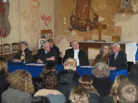 In his statement Prime Minister Rüttgers talked about his personal experiences 40 years ago as an exchange student in France. Archbishop Becker, on the other hand, discussed the word of the Apostolic Nuntio (in Germany) Roncalli, the later Pope John XXIII, who said that Franz Stock is not a name but a programme, defining “programme” as charity and brotherhood. Mrs. Walbaum reported how her family left Germany in 1938 for political reasons and how she met Franz Stock in Paris, where he liberated her father from the hands of the Nazi bloodhounds and thus saved him from death. As a former seminarist Mr. Lanz described life in the „Barbed Wire Seminary“. In their comments and questions the students considered the possibilities improving the contacts with France and other institutions in order to engage themselves towards reconciliation and the creation of peace.