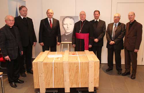 (November 8, 2013) In November 2009, Archbishop Hans-Josef Becker opened the Procedure for the Beatification of Abbe Franz Stock, a priest from the archdiocese of Paderborn (1904-1948). During the last four years, in the course of the “diocesan informative process”, documents and statements have been compiled about the life, virtues, reputation and holiness of Franz Stock, a servant of God. Finalizing the first instance of the Procedure of Beatification, Archbishop Hans-Josef Becker submitted the documents to the Roman attorney Andrea Ambrosi who, as postulator of the procedure, will pass these documents on to the Congregation for Beatification and Sanctification in Rome. These documents, consisting of 16,180 pages, include the statements of some 200 witnesses, two-thirds of whom met Franz Stock in person. For these people, Franz Stock was “their” Abbe and “their” Seminary Director.