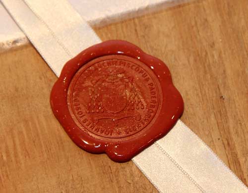 The Archbishop's seal was affixed to the box containing the results of the Diocesan Informative Process. |